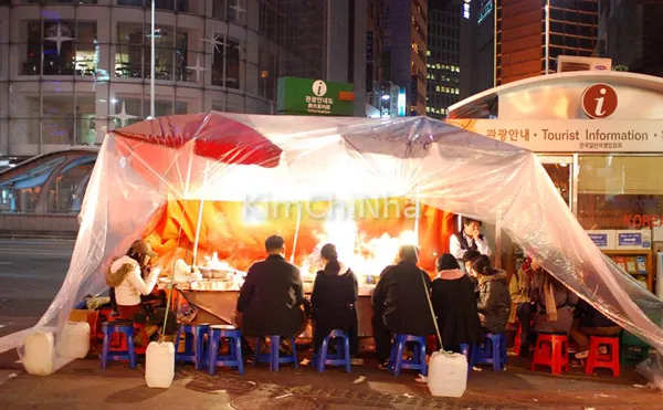 Pojangmacha, theo nghĩa gốc, là “xe đẩy có mái che”. Xuất hiện từ những năm 50–60 của thế kỷ trước, nó ban đầu chỉ là những gánh hàng rong đơn sơ với mái bạt tạm bợ để che mưa gió. Thế nhưng cùng thời gian, những quán lều ấy dần trở thành điểm hẹn quen thuộc trong đời sống của người Hàn. Không hào nhoáng như nhà hàng sang trọng, cũng chẳng ồn ào như quán bar hiện đại, Pojangmacha lại mang trong mình sự ấm cúng và gần gũi đặc trưng. Chỉ vài chiếc bàn nhựa, vài tấm bạt chắn gió, thế nhưng không khí nơi đó lại có khả năng khiến con người xích lại gần nhau.