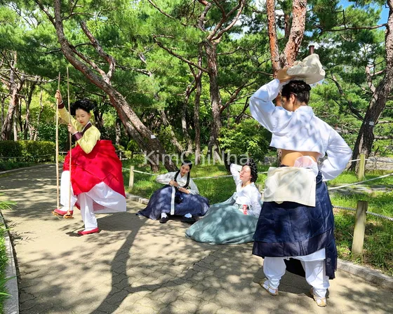 "Vẻ Đẹp Hanbok" – Tái Hiện Tranh Dân Gian: Tái hiện lại bức tranh "Dano Day Scenery" của danh họa Shin Yun-bok, đội này có một tiết lộ hài hước: một trong những "cô gái" đang phơi lưng thực chất là một nam giới đã hóa trang. Họ cũng phải dùng hai tay giữ chiếc xích đu để tạo dáng đôi chân đang nghỉ trên đó.