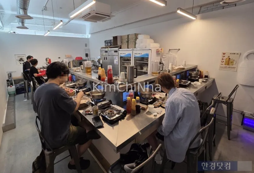 Ngày 12/8 tại một quán thịt nướng ở quận Jung-gu, Seoul: Bên trong quán, dãy ghế ngồi cá nhân được xếp ngay ngắn dọc theo tường, mỗi bàn có vách ngăn mỏng để tạo không gian riêng. Thực khách – từ nhân viên văn phòng, sinh viên cho đến khách du lịch nước ngoài – đều đeo tai nghe, vừa tự nướng thịt trên bếp nhỏ vừa thưởng thức bữa ăn một mình.