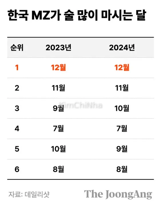 Về mùa, whisky thống trị từ tháng 12 đến tháng 2, chứng tỏ mùa đông là thời điểm “lên ngôi” của các dòng whisky truyền thống. Từ mùa xuân đến thu, bia lại được ưa chuộng hơn khi thời tiết thích hợp cho các hoạt động ngoài trời. Giáo sư Myeong Wook, chuyên ngành Barista – Sommelier Đại học Sejong, cho rằng: “Việc lựa chọn loại rượu phụ thuộc lớn vào việc uống trong nhà hay ngoài trời.”