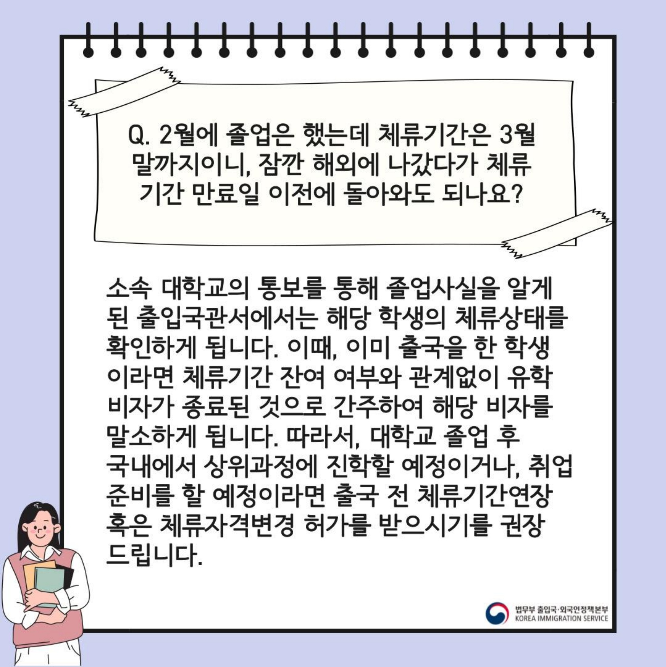 Bạn là du học sinh tại Hàn Quốc và có nhiều thắc mắc về quy định visa, thời gian lưu trú, tốt nghiệp, làm thêm và các thủ tục liên quan? Dưới đây là 10 câu hỏi phổ biến nhất mà du học sinh thường gặp phải cùng với giải đáp chính thức từ Cục Xuất Nhập Cảnh Hàn Quốc!