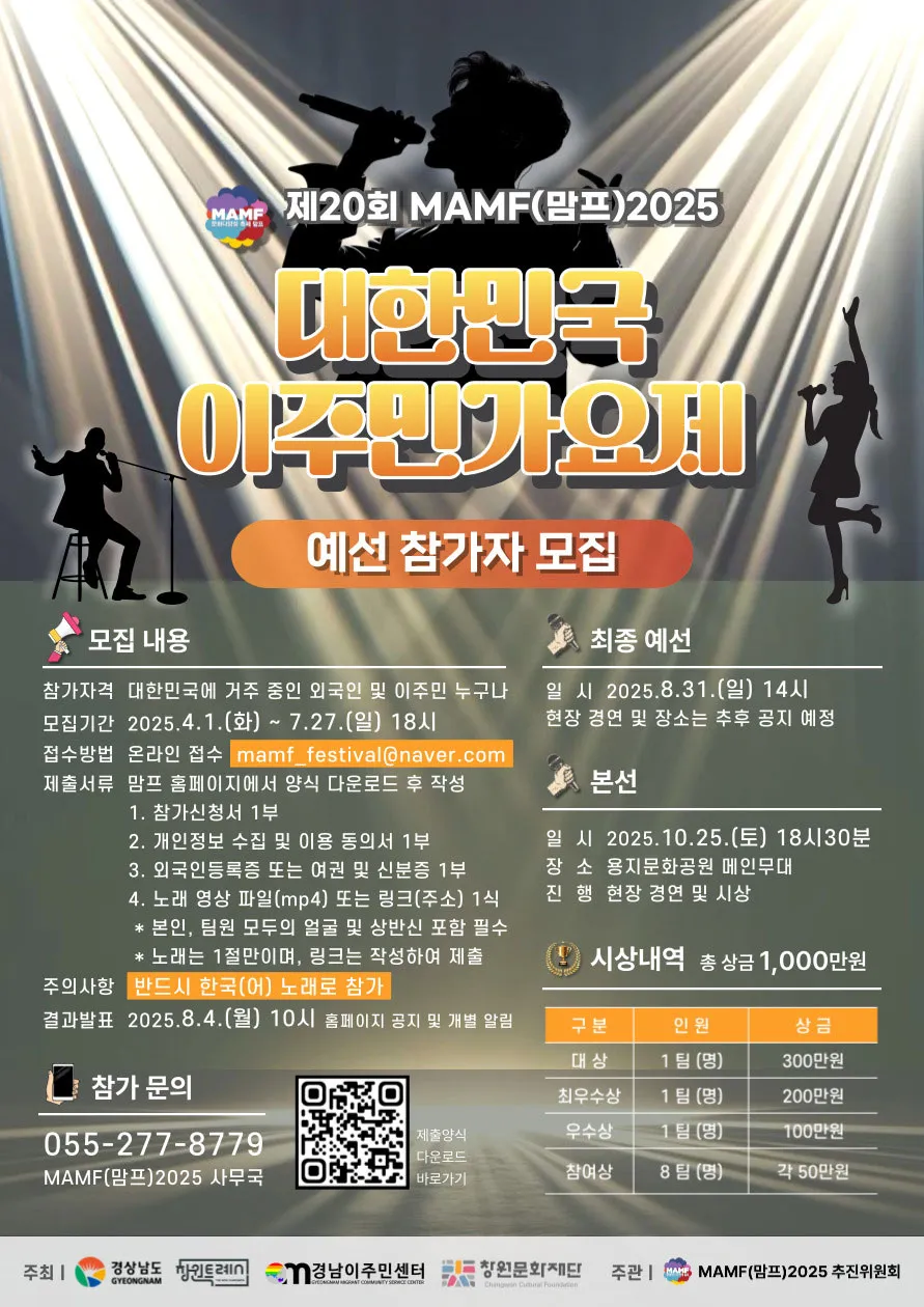 - Bạn có thể truy cập trang chính thức www.mamf.co.kr hoặc quét mã QR trên poster để tải mẫu đơn và biết thêm thông tin chi tiết.