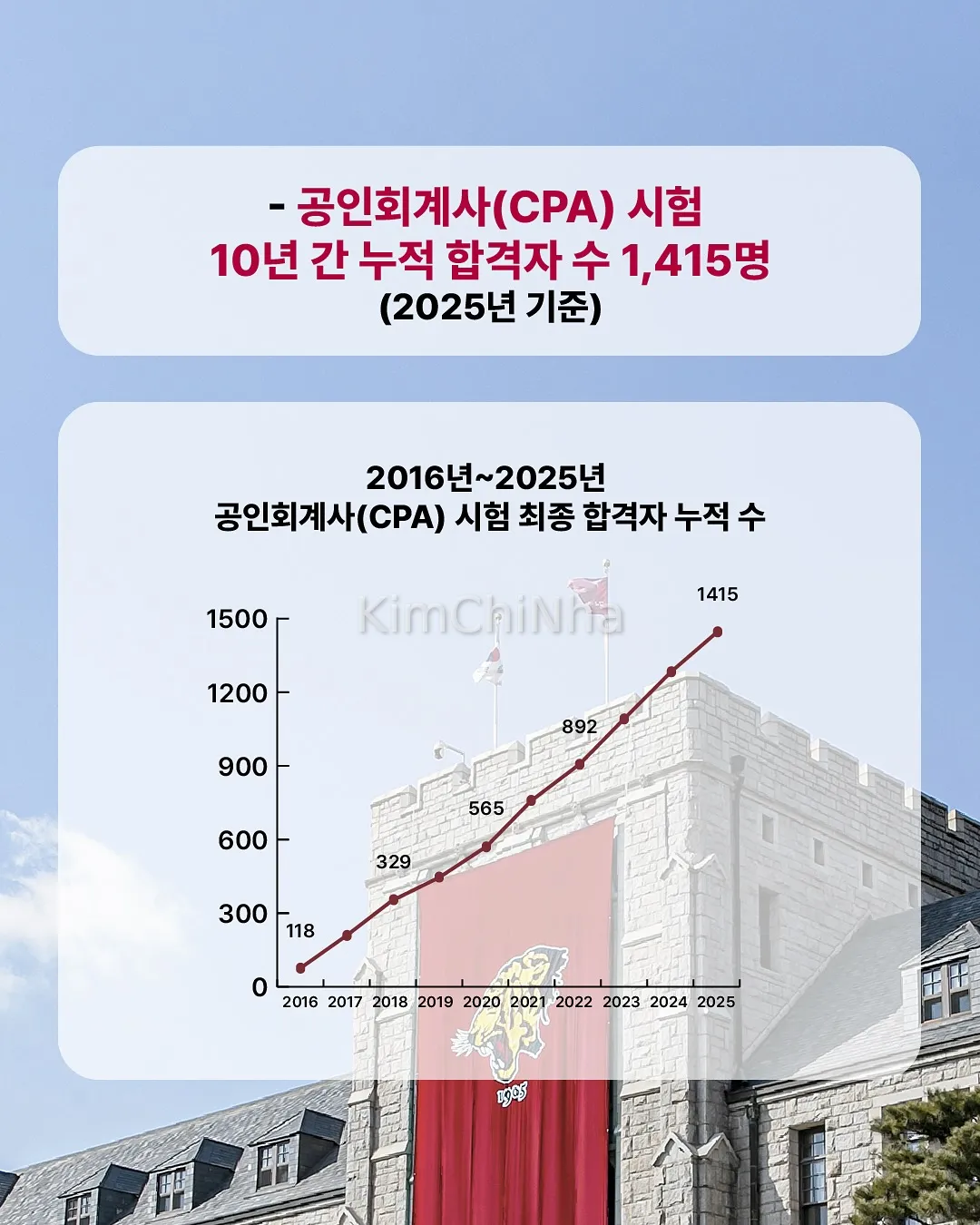 Đại học Korea (Goryeo University) tự hào thông báo giữ vững vị trí số 1 toàn quốc về số lượng thí sinh đỗ kỳ thi Kế toán công chứng (CPA) trong... 10 năm liên tiếp! Điều gì đã làm nên chuỗi thành tích "bất bại" này của một trong những đại học danh giá nhất xứ kim chi? Đặc biệt hơn, không chỉ dẫn đầu về số lượng, mà cả thủ khoa và thí sinh trẻ tuổi nhất năm nay cũng đều đến từ Đại học Korea, khẳng định đẳng cấp vượt trội trong đào tạo nguồn nhân lực chất lượng cao.