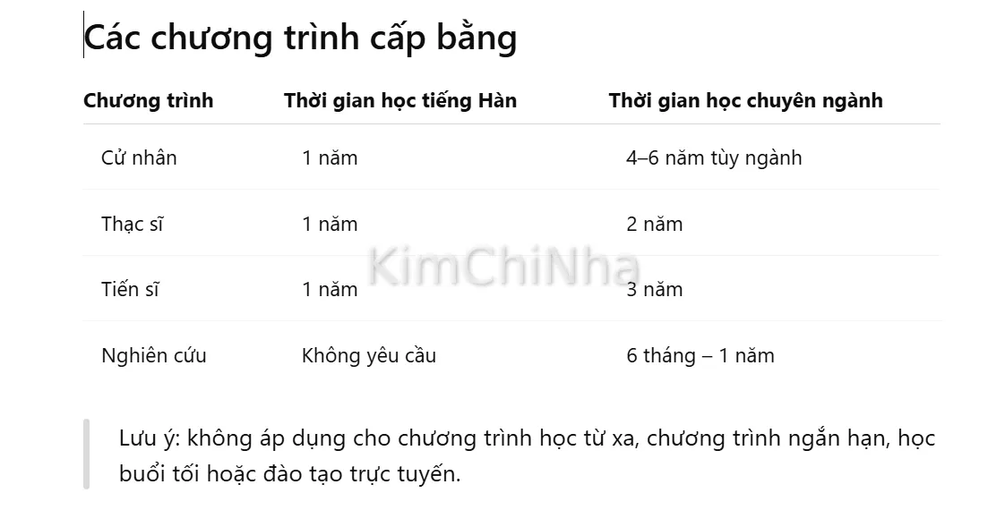 Lưu ý: Các ứng viên cần theo dõi kỹ danh sách trường công bố hằng năm, thường được cập nhật  trên trang www.studyinkorea.go.kr