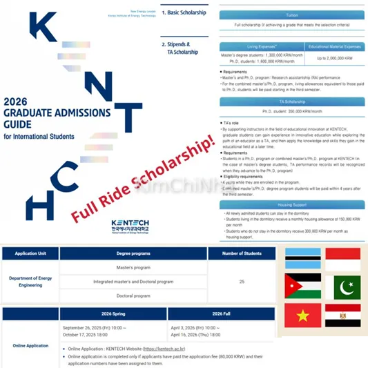 Ứng tuyển : https://gs.kentech.ac.kr/eng/admission/