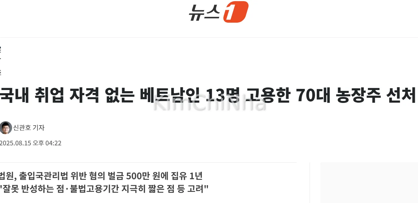 Nông dân Hàn Quốc lĩnh án vì thuê 13 lao động Việt Nam không phép