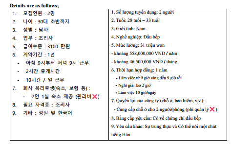 TUYỂN NHÂN VIÊN LÀM NHÀ HÀNG Ở GAPYEONG, TỈNH GYEONGGI