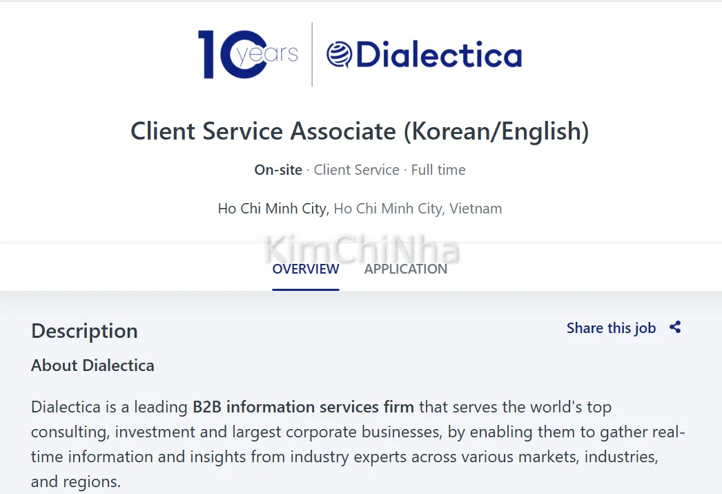 Dialectica tuyển dụng Client Service Associate biết tiếng Hàn tại TP. Hồ Chí Minh