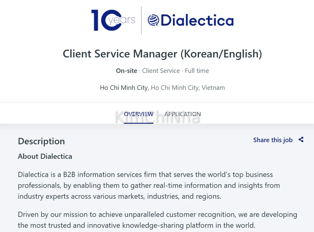 Dialectica tuyển dụng Client Service Manager (biết tiếng Hàn) tại TP. Hồ Chí Minh