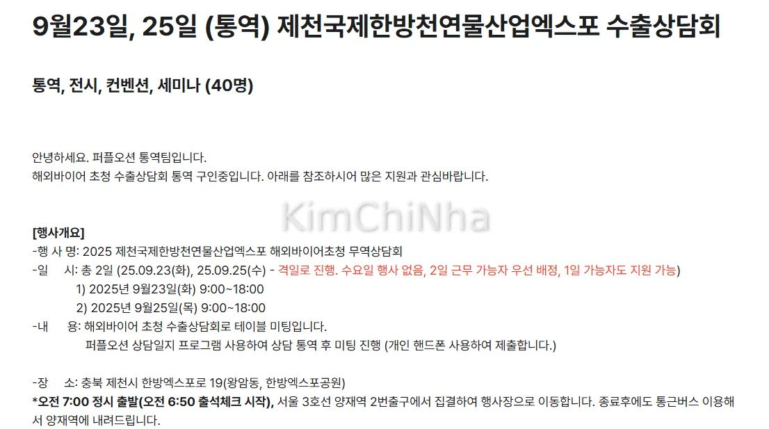 Tuyển dụng Thông dịch viên tiếng Việt tại Jecheon International Expo 2025