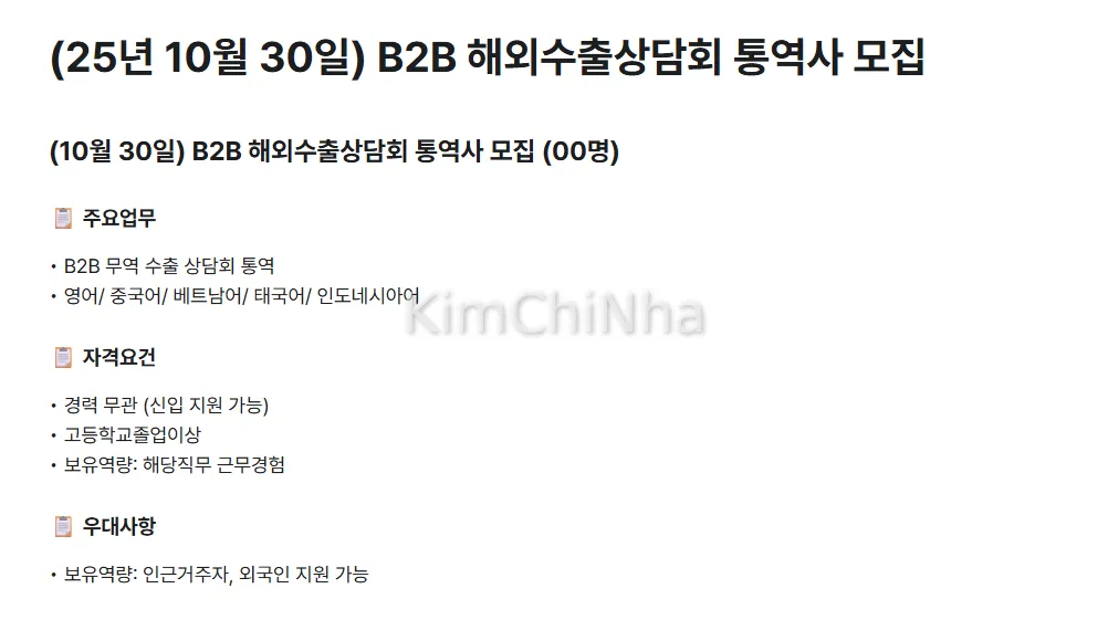 Tuyển thông dịch viên tiếng Việt – Hội nghị xuất khẩu B2B (ngày 30/10 tại Jeonju)