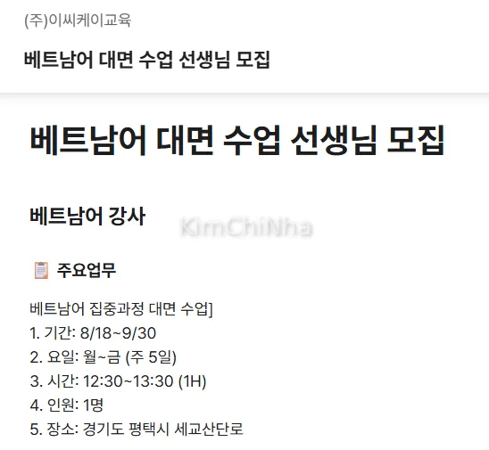 ㈜이씨케이에듀케이션 Tuyển dụng giáo viên tiếng Việt dạy trực tiếp (Freelancer) tại Pyeongtaek