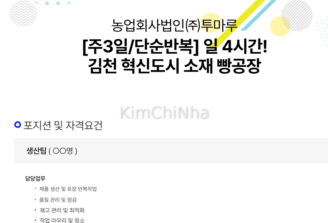 농업회사법인(주)투마루 (Tumaru) tuyển nhân viên làm việc bán thời gian hoặc chính thức tại nhà máy bánh