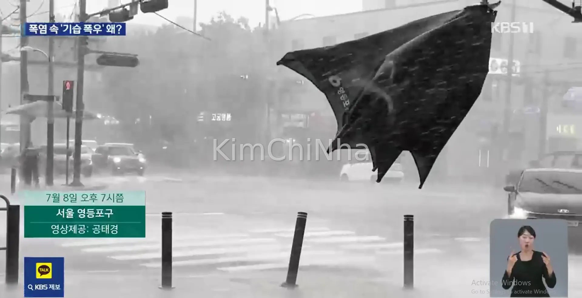 Tại khu vực tây nam Seoul, mưa lớn vào tối ngày 8/7 lên đến hơn 60mm mỗi giờ, khiến cơ quan khí tượng phải phát đi cảnh báo mưa to.