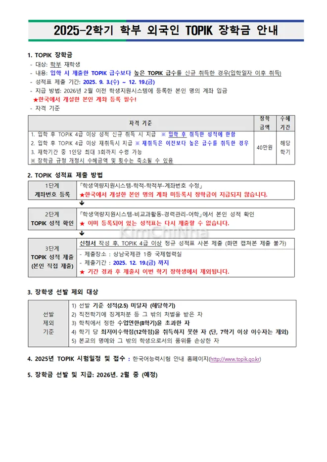 - Lưu ý: Chứng chỉ TOPIK đã đăng ký trước đó không được nộp lại. Không chấp nhận nộp sau hạn.