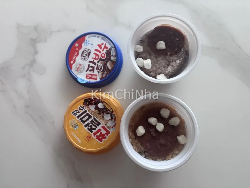 Cả hai có trọng lượng khoảng 240g và giá khoảng 2.000 won (~37.000 VNĐ). Trong khi đó, cúp bingsu của MegaMGC là 500g, gấp đôi về khối lượng và có sữa tươi, kem thật, topping đa dạng – hoàn toàn