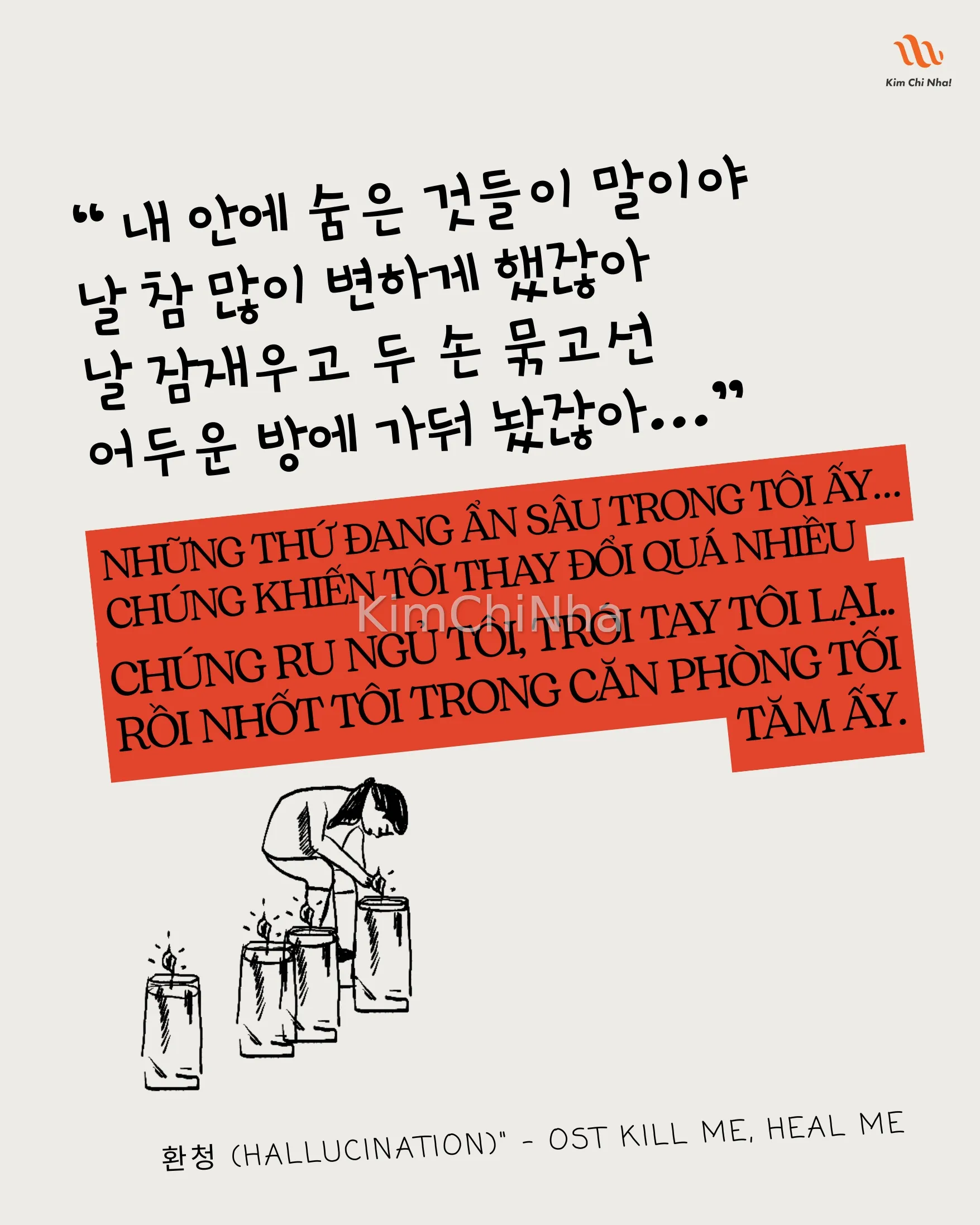 Nếu bạn từng xem Kill Me, Heal Me, bạn sẽ không thể quên “Auditory Hallucination (환청)” – bài hát mở đầu như một tiếng gọi lạc lõng vang vọng giữa màn đêm lạnh. Một bản nhạc khắc khoải gói trọn nội tâm hỗn loạn và những mảnh linh hồn vỡ vụn trong thân xác của một con người đang chiến đấu với chính mình.