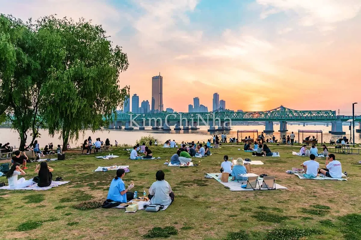 Trải nghiệm Chính: Khoảnh khắc tuyệt vời nhất là Picnic trên Thảm Cỏ (잔디마당), nơi bạn có thể thư giãn và tận hưởng gió sông Hàn (강바람) mát rượi.