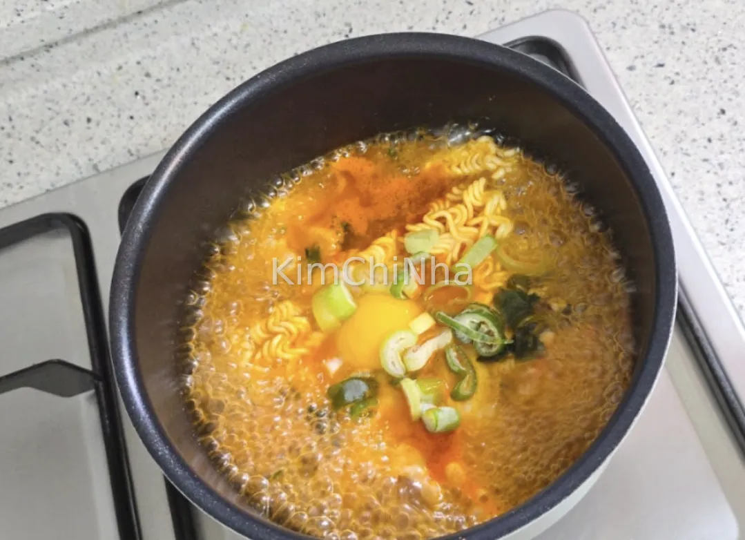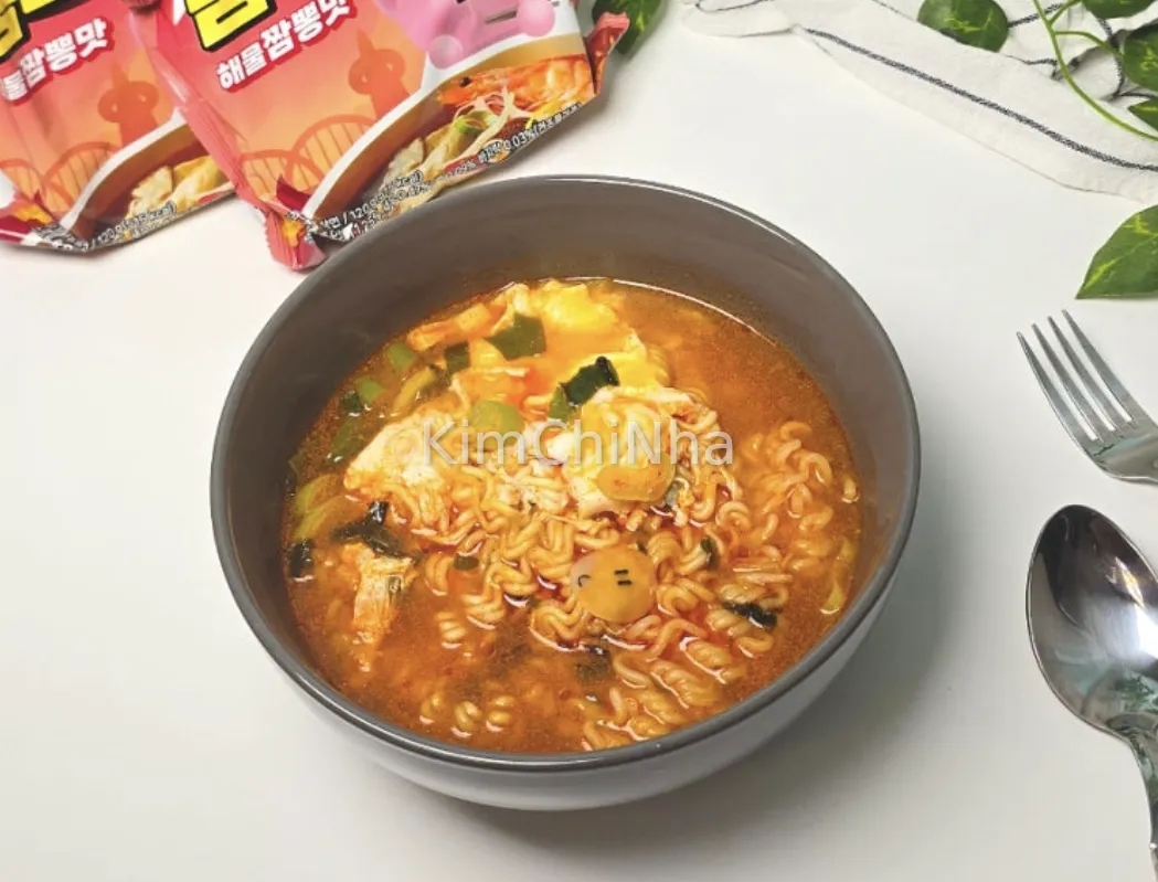 Cách nấu rất đơn giản: đun 500ml nước, cho rau củ vào trước, khi sôi thì thêm mì và bột súp, sau đó đập trứng và cho hành lá tùy thích, cuối cùng thêm dầu gia vị. Hương vị tổng thể khiến tôi liên tưởng đến sự kết hợp giữa vị ngọt thanh của mì tôm Ottogi và vị cay nhẹ của Jin Jjamppong. Nước dùng không quá đậm, hậu vị thanh và không bị ngấy.