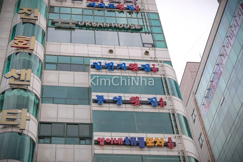 Ilbeonji Hoejip nằm trên tầng 7 của Trung tâm Cá sống Seongjin, ngay cạnh khu chợ Minrak ồn ào. Biển hiệu của quán đã bạc màu theo năm tháng, một dấu hiệu của một quán ăn lâu đời, không chạy theo vẻ hào nhoáng bên ngoài.