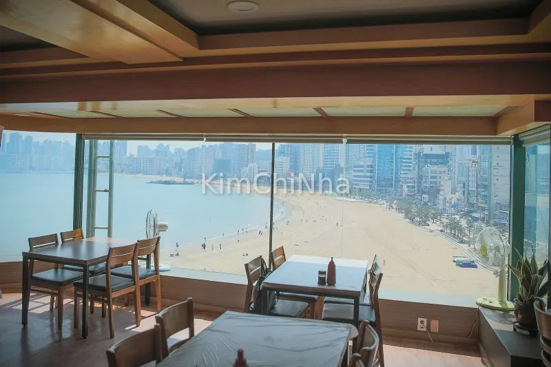 Và rồi, điều tuyệt vời nhất hiện ra. Từ tầng 7, cả bãi biển Gwangalli và cây cầu Gwangan tráng lệ được thu vào trọn vẹn trong tầm mắt. Một khung cảnh "triệu đô" mà bạn khó có thể tìm thấy ở những quán ăn mặt đất.