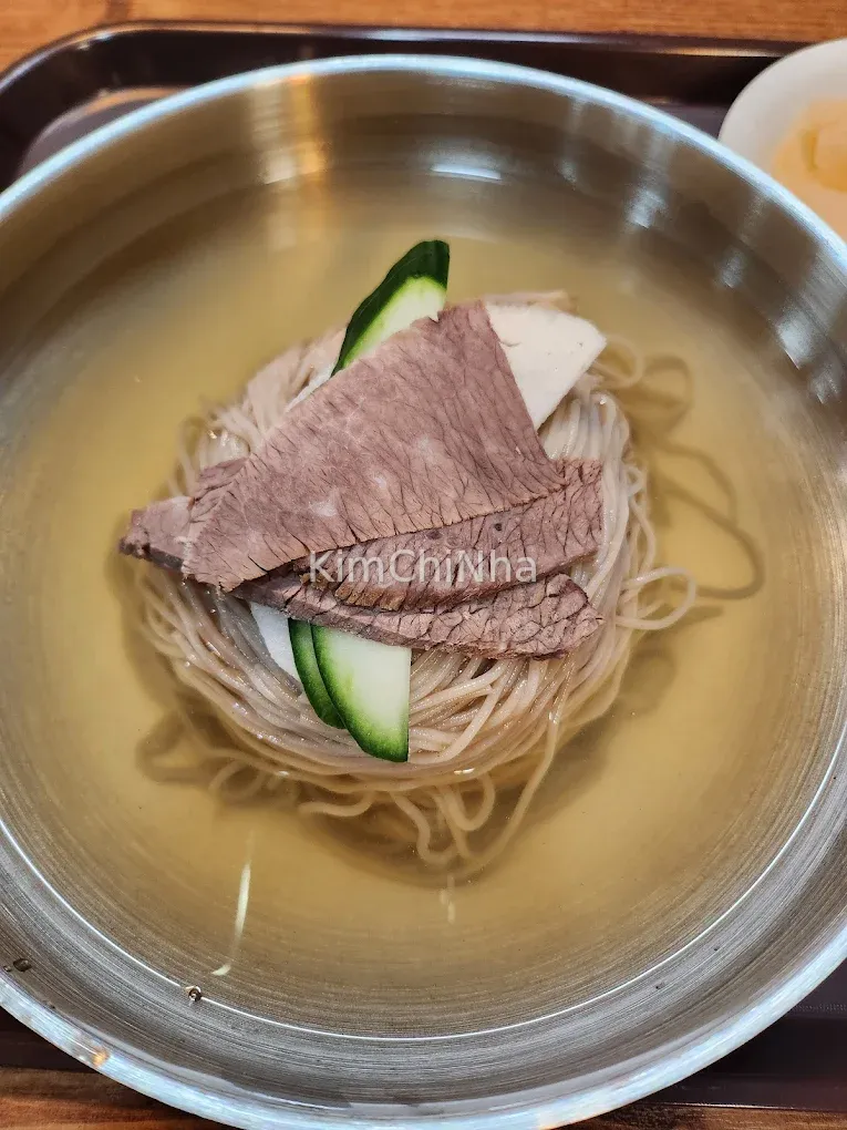 Tất cả tạo nên một tổng thể hài hòa, thanh tao. Mách nhỏ: Đừng quên gọi thêm đĩa thịt luộc (제육) hoặc bánh mandu (만두) kiểu Pyongyang để ăn kèm.