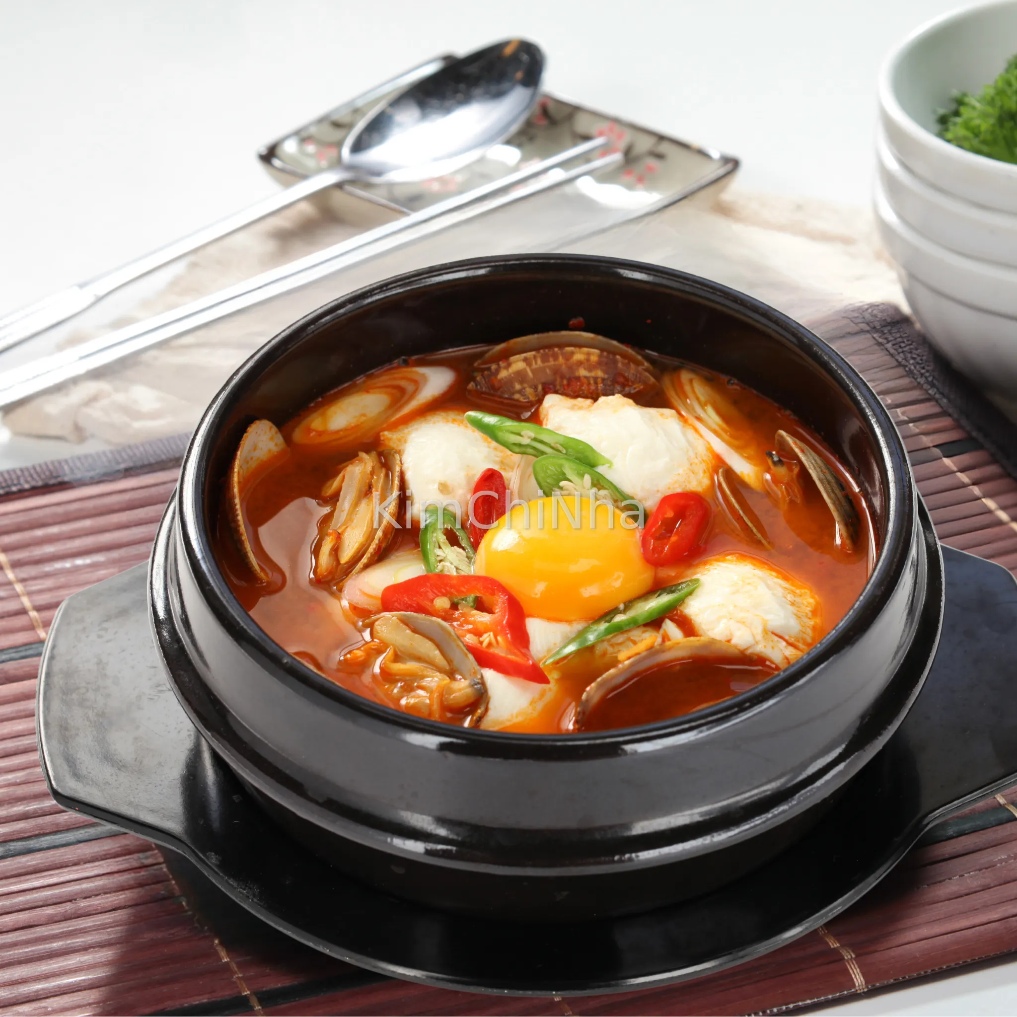 Sundubu-jjigae: canh đậu phụ non nấu hải sản, thường đập thêm quả trứng sống tạo vị béo ngậy, nóng hổi cho những ngày đông.
