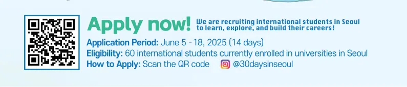 👉 Đừng bỏ lỡ cơ hội tham gia chương trình “30 Days in Seoul” – chương trình hỗ trợ tích hợp do Chính quyền Thành phố Seoul tổ chức!