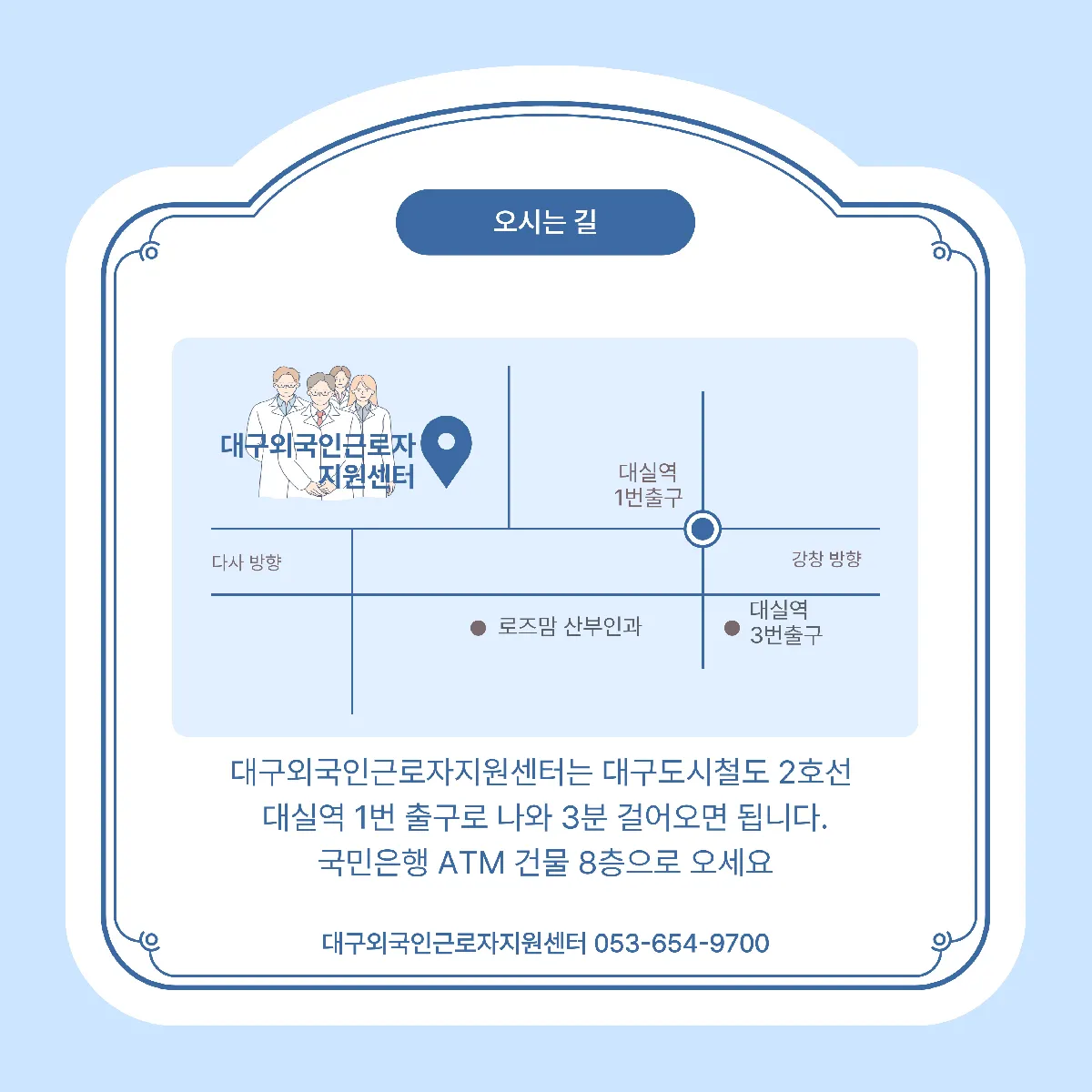 📍 Địa điểm: Tầng 8, Trung tâm hỗ trợ lao động nước ngoài Daegu (863 Dalseo-daero, quận Dalseo, Daegu – gần ga Dalseo, lối ra số 1, đi bộ 3 phút)
