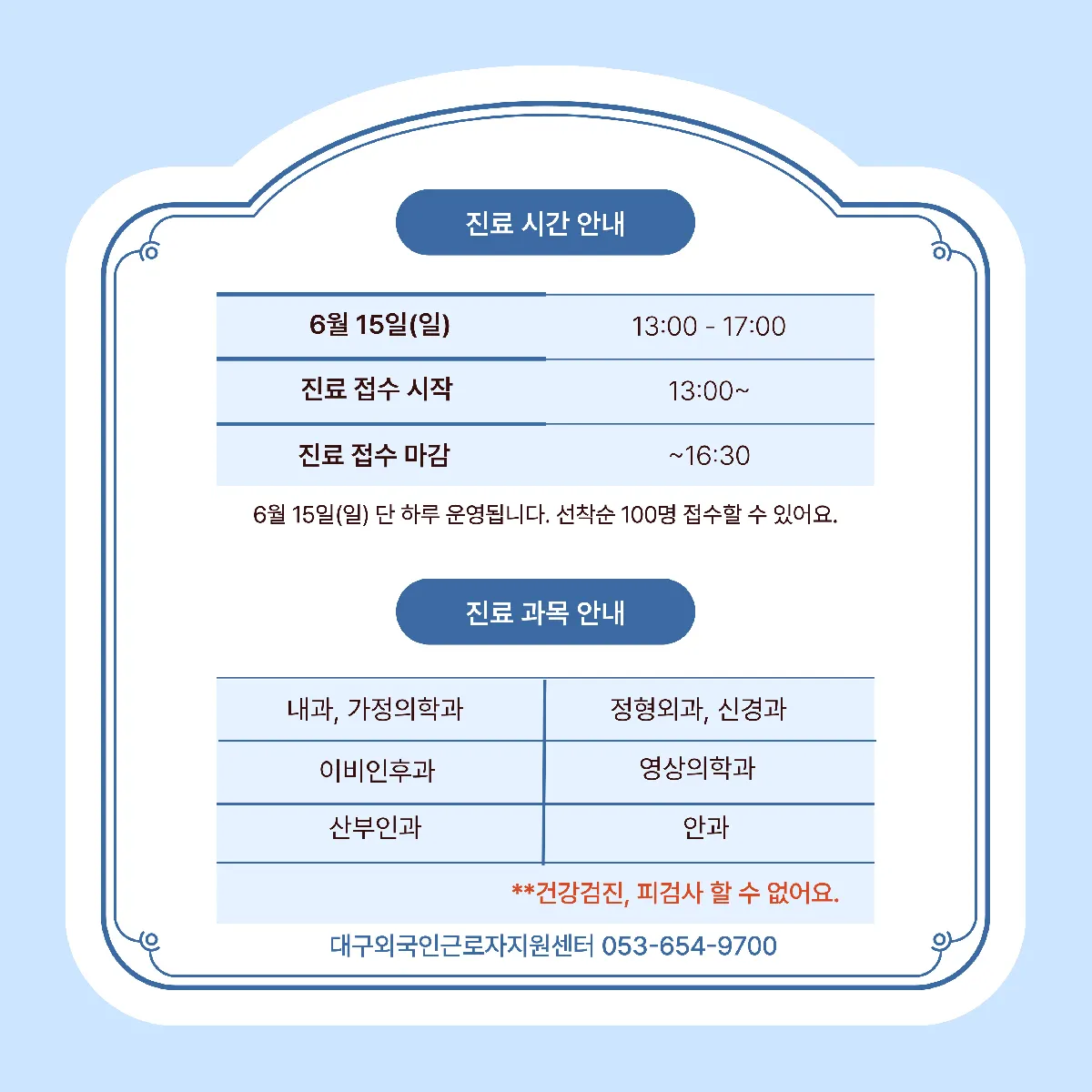 🩺 Khám bệnh miễn phí dành cho người lao động nước ngoài tại Daegu Chỉ duy nhất ngày 15/6 – Giới hạn 100 người!
