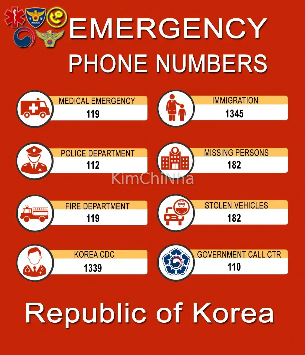 Cần Nhớ Hãy lưu ngay những số này vào danh bạ của bạn. Ở Hàn Quốc, mỗi loại hình khẩn cấp có một số riêng: