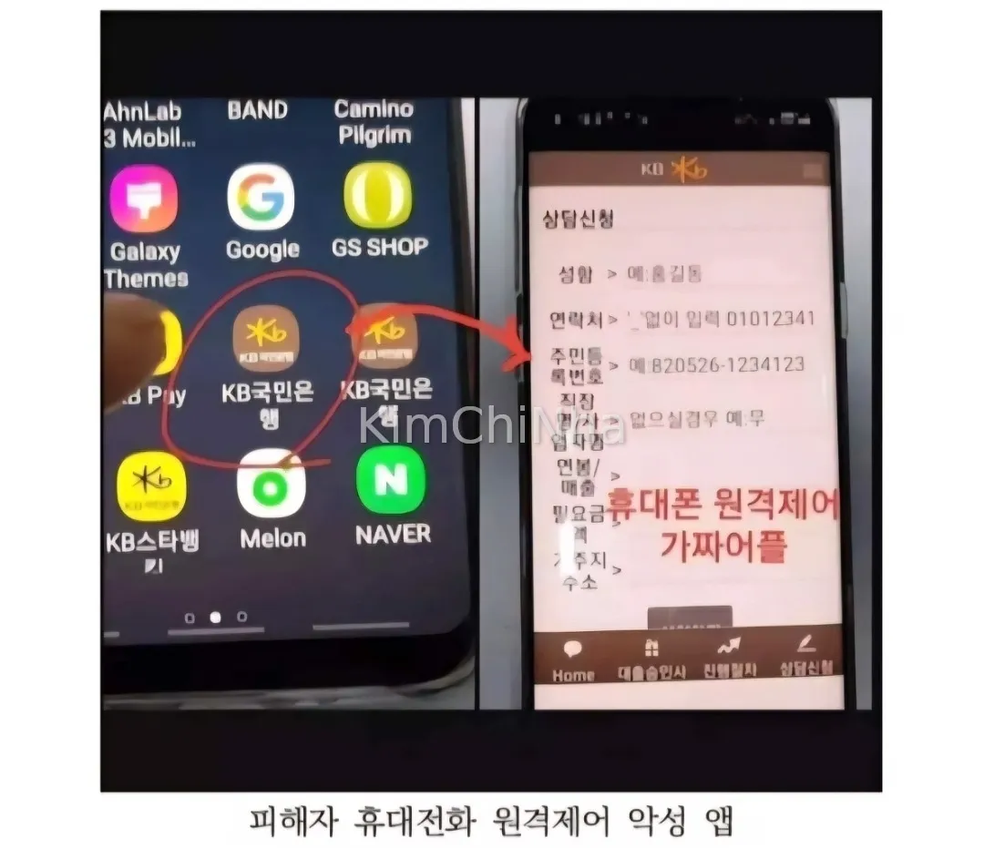 Bước 3: Chiếc bẫy sập xuống: Bạn click vào link, tải về một ứng dụng có giao diện y hệt app của ngân hàng thật. Nhưng đó chính là một phần mềm gián điệp (악성 앱). Kể từ giây phút bạn cài đặt nó, bi kịch bắt đầu.