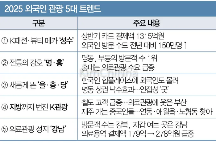Tạp chí Maeil Business Economy (Hàn Quốc) đã kết hợp cùng các đơn vị dữ liệu lớn như NICE Geniedata, LG Uplus, Hana Card và Global Tax Free để phân tích bản đồ tiêu dùng của khách quốc tế tại Hàn Quốc trong nửa đầu năm 2025, từ đó phác họa rõ ràng các khu vực hot và xu hướng chi tiêu nổi bật.