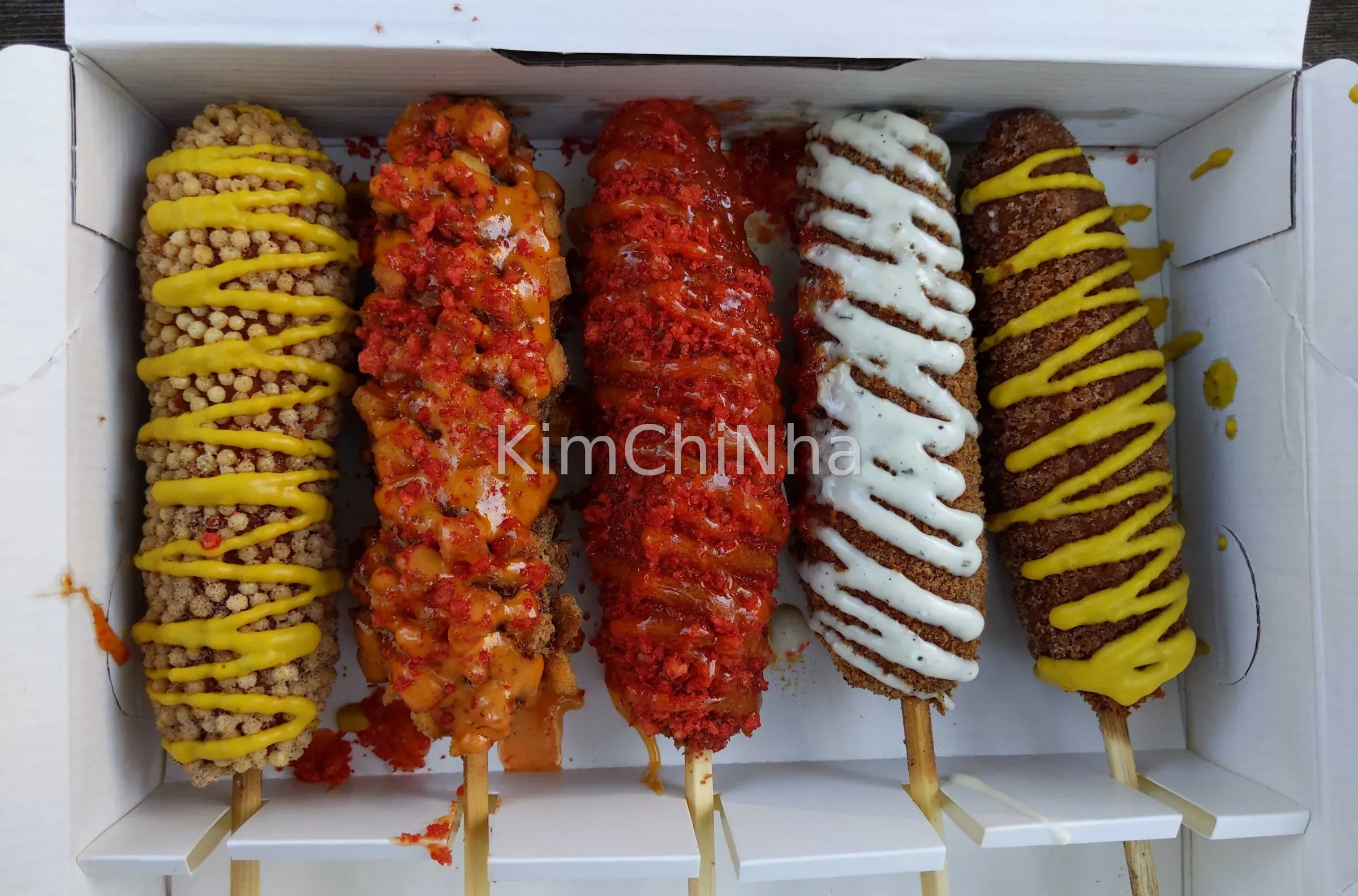 Trong số nhiều món Hàn được yêu thích, hotdog Hàn Quốc (Korean corndog) nổi bật nhờ sự sáng tạo. Thay vì dùng bột ngô như phiên bản Mỹ, hotdog Hàn được áo bằng bột gạo hoặc bột mì rồi chiên ngập dầu, mang đến vị dai giòn đặc trưng. Người Hàn còn biến tấu với phô mai kéo sợi, khoai tây chiên giòn và nhiều loại sốt hấp dẫn.