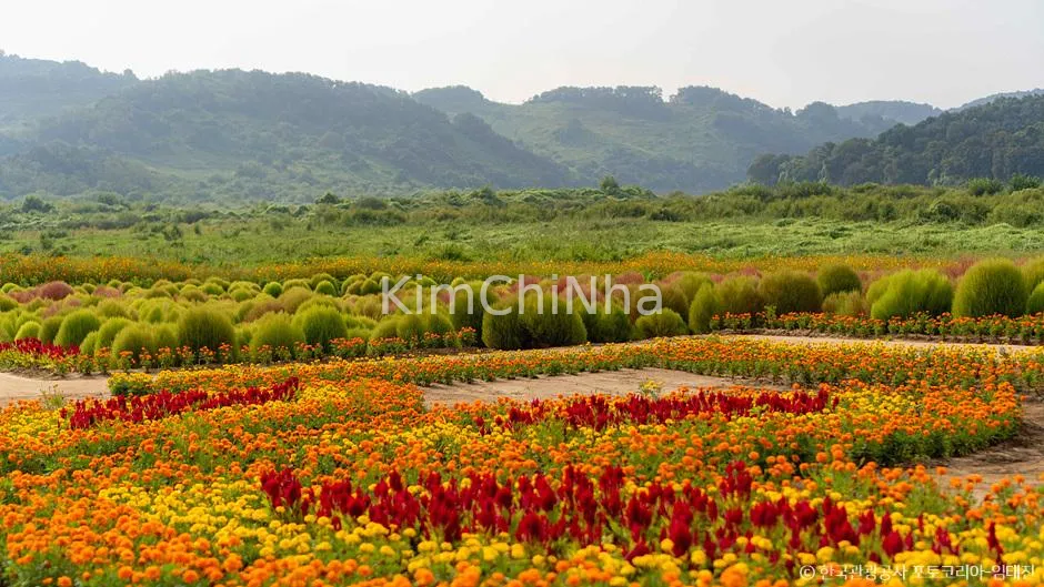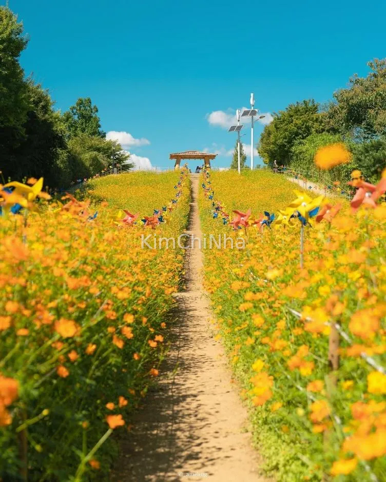 Vườn Cúc Vàng Imjingang là một viên ngọc ẩn ở ngoại ô Seoul, nơi vẻ đẹp được tạo nên từ chính bàn tay và trái tim của người dân địa phương. Khu vườn này được chính những người dân Yeoncheon tự tay gieo trồng và chăm sóc, không chỉ có hoa cúc mà còn có cả hoa sao nhái, hoa cúc, bạch nhật, vạn thọ và nhiều loại hoa khác.