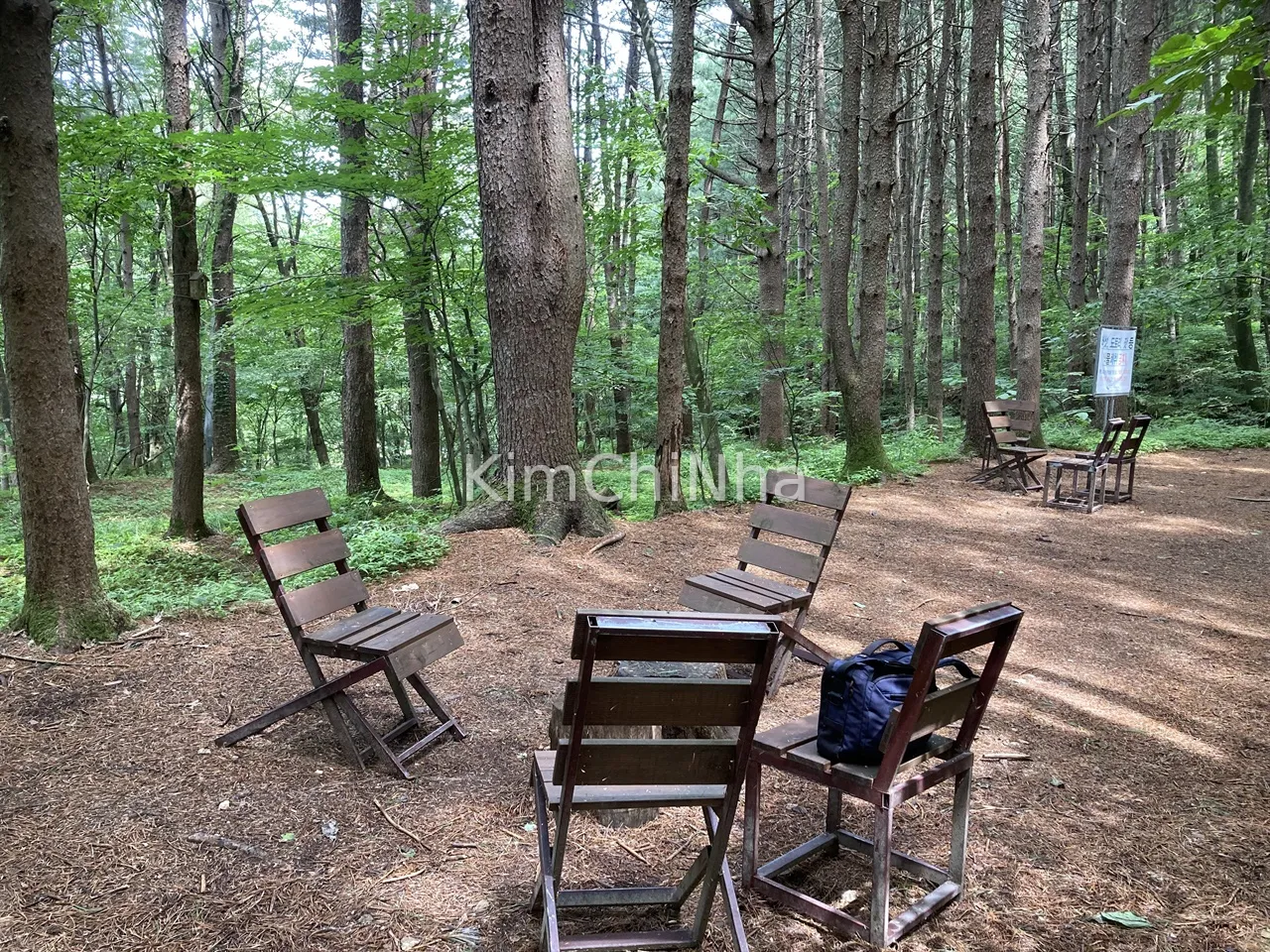 Đi dạo trên con đường này, người ta có thể sẽ tự hỏi: "Phải chăng đây chính là cực lạc?" Đi sâu hơn một chút, bạn sẽ thấy bảy chiếc ghế gỗ đơn được đặt lặng lẽ dưới những tán thông. Đây không phải là nơi để vội vã đi qua, mà là nơi để dừng lại, ngồi xuống, và không làm gì cả.