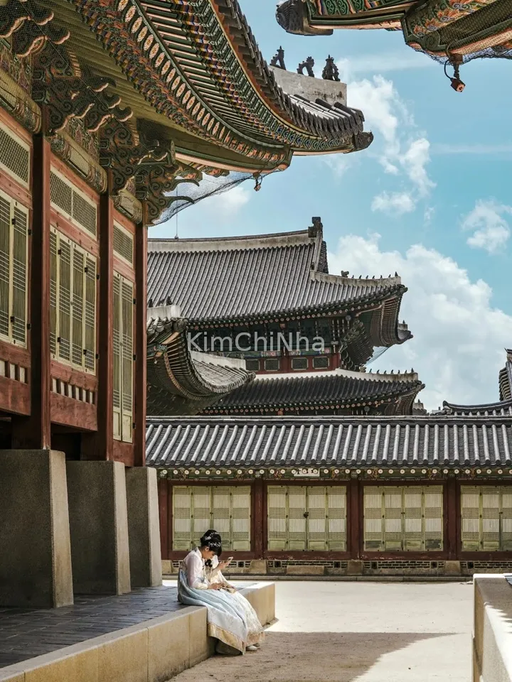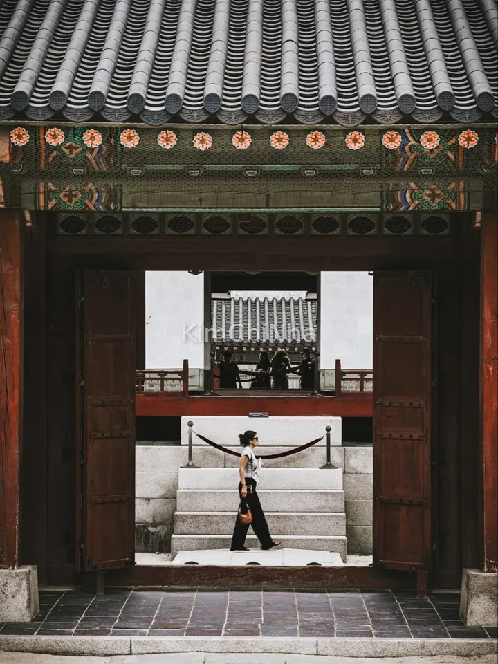 Đi dạo trong khuôn viên rộng lớn của cung điện, bạn sẽ thấy những mái ngói cong vút, những hành lang đỏ rực và những chi tiết chạm trổ tinh xảo. Dù chỉ cầm máy điện thoại thôi, bạn cũng có thể chụp được những bức ảnh ấn tượng. Đặc biệt, nếu mặc hanbok thì vé vào cửa hoàn toàn miễn phí, và bạn sẽ có cảm giác như được quay về thời Joseon, bước đi giữa những bức tường cổ kính.