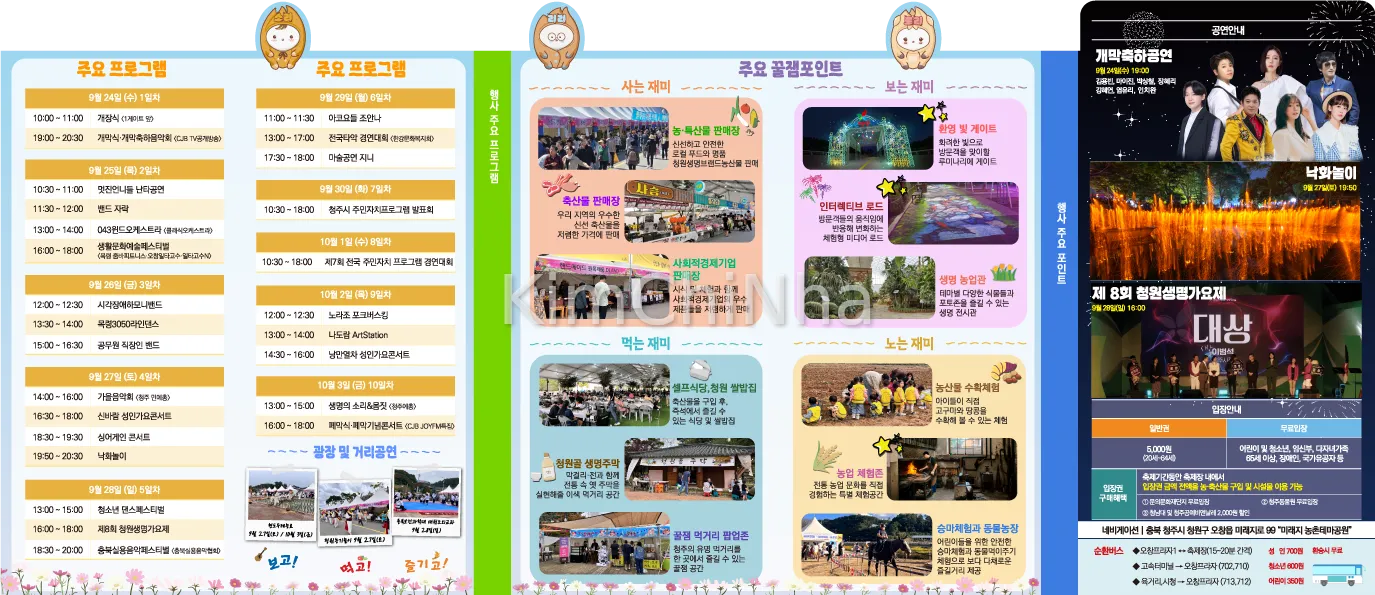 Điểm đặc biệt và giá trị nhất của lễ hội chính là tên gọi "Cheongwon Saengmyeong", vốn là một thương hiệu nông sản sạch nổi tiếng của thành phố Cheongju. Các sản phẩm mang nhãn hiệu này, từ gạo, rau củ cho đến thịt, cá, đều được sản xuất theo quy trình thân thiện với môi trường và được kiểm soát chất lượng nghiêm ngặt.