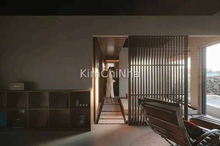 Mọi ngóc ngách đều được chăm chút. Từ cách ánh sáng buổi sớm lướt qua mái gỗ, đến đường bóng đổ lặng thinh trên sàn terrazzo, tất cả góp phần tạo nên một trải nghiệm sống tự nhiên, mạch lạc và thanh lọc.