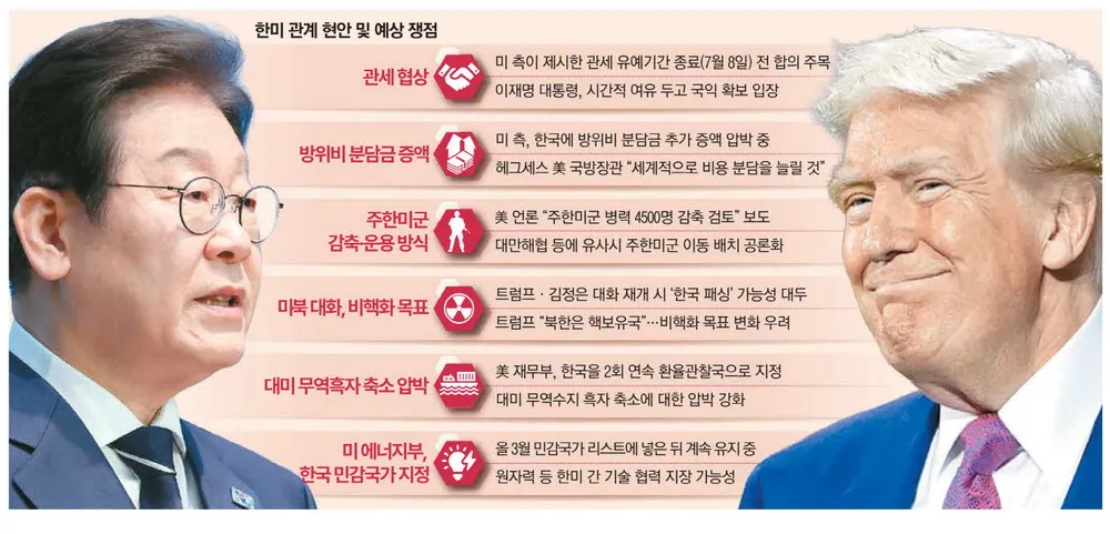 Trong cuộc trao đổi, hai nhà lãnh đạo khẳng định tiếp tục củng cố liên minh Hàn–Mỹ, duy trì ổn định khu vực bán đảo Triều Tiên và Ấn Độ Dương – Thái Bình Dương. Đây được coi là sự khởi đầu thuận lợi về mặt hình thức, nhưng ngay phía sau là chuỗi thử thách lớn mà ông Lee phải đối mặt với đồng minh số một của Hàn Quốc.