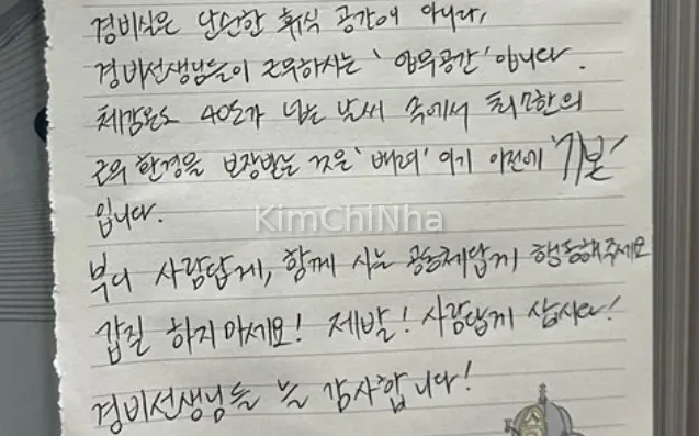 “Phòng bảo vệ không chỉ là nơi nghỉ ngơi, mà là nơi làm việc. Việc đảm bảo môi trường làm việc tối thiểu không phải là sự ban ơn, mà là điều cơ bản. Xin đừng hành xử như kẻ bề trên, hãy sống tử tế. Chúng tôi luôn biết ơn các chú bảo vệ.”