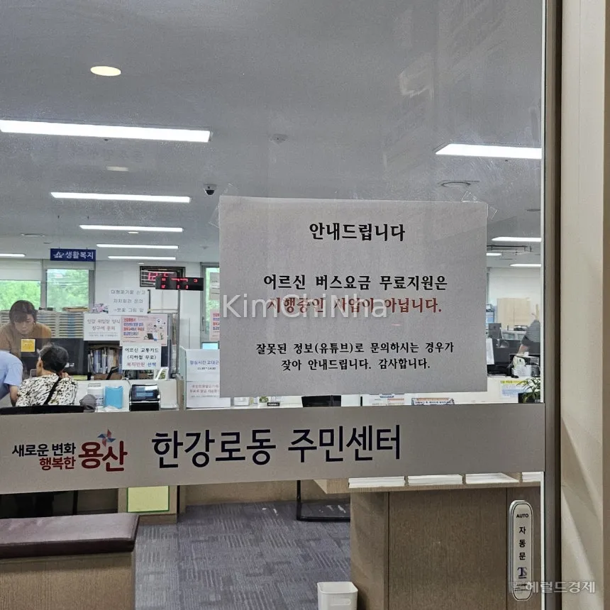 Một cán bộ tại Trung tâm Hành chính – Phúc lợi phường Hangangno cho biết: “Từ tháng 7 vừa qua, xuất hiện tin giả về chính sách miễn phí xe buýt cho người trên 65 tuổi tại Seoul. Vì thế, chúng tôi liên tục nhận được điện thoại và khách đến hỏi. Do thực tế địa phương chưa hề áp dụng chính sách này, trung tâm buộc phải dán thông báo riêng.”