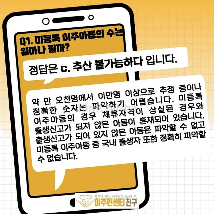Nhờ sự giúp đỡ, A được nhập học tiểu học. Công ước Liên Hiệp Quốc về Quyền Trẻ em (UNCRC) khẳng định mọi trẻ em có quyền được giáo dục, bất kể quốc tịch hay tình trạng cư trú. Theo đó, từ năm 2008, Hàn Quốc cho phép trẻ di cư không đăng ký vào học tiểu học nếu chứng minh nơi cư trú qua hợp đồng thuê nhà hoặc giấy bảo lãnh. (Đến năm 2013, quyền cư trú của trẻ di cư không đăng ký mới được kéo dài đến trung học).