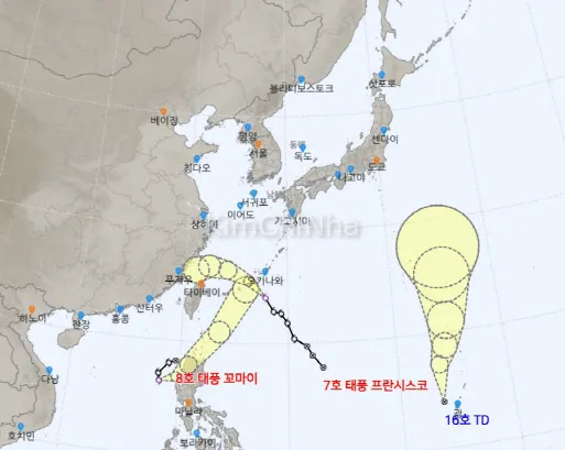 Hai cơn bão – Francisco (bão số 7) và Kompasu (bão số 8) – đang hoạt động gần khu vực Đài Loan và Okinawa (Nhật Bản), có khả năng tương tác tạo xoáy áp thấp, ảnh hưởng đến thời tiết Hàn Quốc.