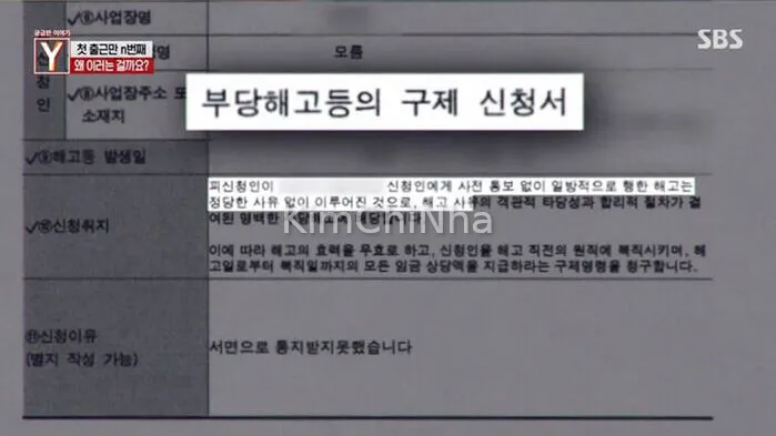 Anh ta cho rằng mình bị bạo lực và bạo ngôn trong công việc, nên không thể tiếp tục làm. Tuy nhiên, hình ảnh từ camera giám sát (CCTV) lại cho thấy, quản lý chỉ đơn thuần chạm nhẹ vào lưng để hướng dẫn công việc. Sau đó, Kim bỏ việc ngay trong ngày đầu tiên, viện cớ “tổn thương tinh thần nghiêm trọng” và xin về nhà.