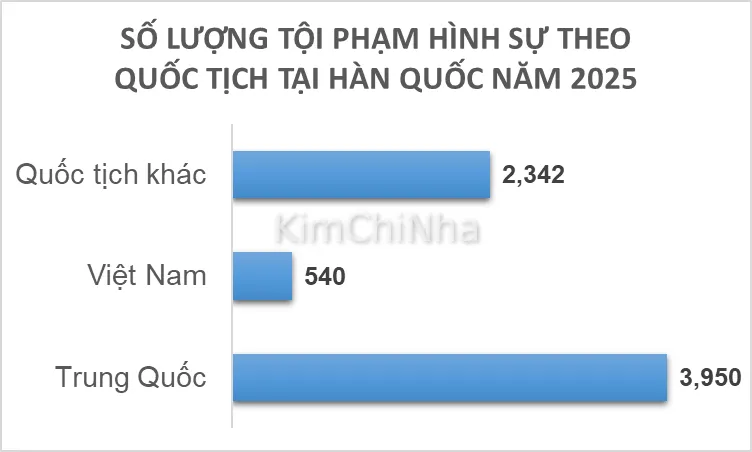 Người Việt chiếm 8.5% trong các vụ án hình sự tại Hàn Quốc đối với nhóm tội phạm nước ngoài, đứng thứ 2 chỉ sau Trung Quốc
