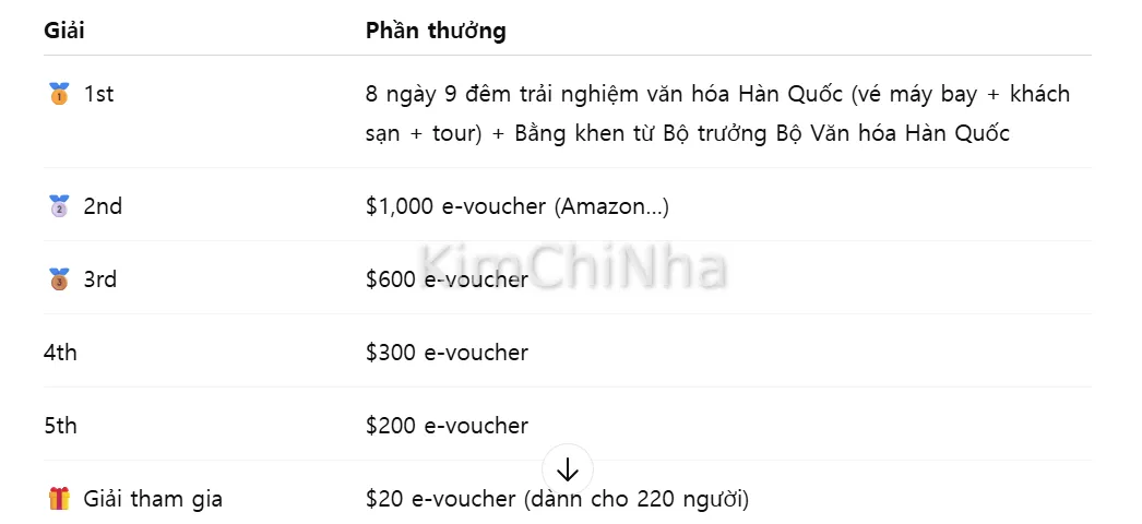 ![[Talk Talk Korea 2025] Cuộc thi sáng tạo nội dung về văn hóa Hàn Quốc dành cho người nước ngoài : Giải thưởng hấp dẫn lên đến 8 ngày du lịch Hàn Quốc miễn phí!](/upload/6d269419b36f4583b6a6780e4dabea00.webp?thumbnail)
