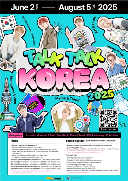 [Talk Talk Korea 2025] Cuộc thi sáng tạo nội dung về văn hóa Hàn Quốc dành cho người nước ngoài – Giải thưởng hấp dẫn lên đến 8 ngày du lịch Hàn Quốc miễn phí!