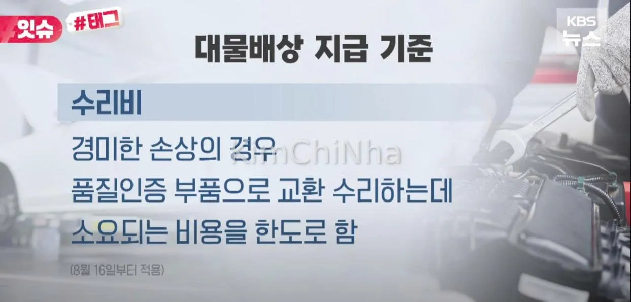 Gần đây, một bài đăng trên mục kiến nghị quốc dân của Hàn Quốc đã thu hút sự chú ý khi kêu gọi hủy bỏ việc sửa đổi điều khoản tiêu chuẩn trong bảo hiểm ô tô. Nội dung kiến nghị phản đối quy định ưu tiên sử dụng linh kiện đạt chứng nhận chất lượng thay vì linh kiện chính hãng của nhà sản xuất trong quá trình sửa chữa xe.