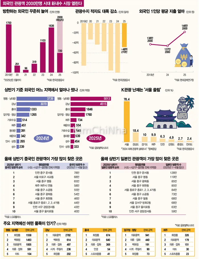 Trong bối cảnh người dân Hàn Quốc cắt giảm chi tiêu, làn sóng mua sắm của du khách nước ngoài đang giúp kích thích lại nhiều ngành nghề như miễn thuế, bán lẻ cao cấp, thời trang và mỹ phẩm – lan tỏa không chỉ ở Seoul mà còn ra vùng ven và các địa phương khác.